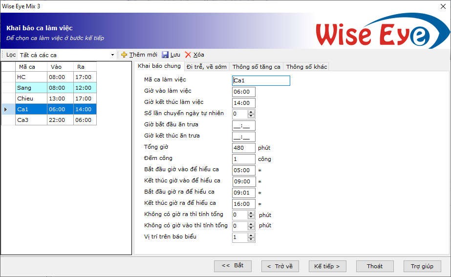 Các ca làm việc thường gặp
