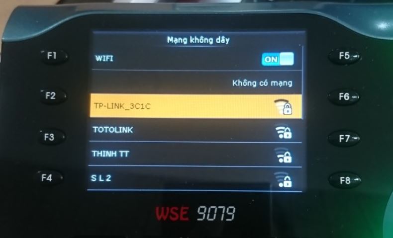 Để kết nối với điểm truy cập Wifi thì chúng ra vào Danh Mục Chính -> Thiết Lập L.Kết -> Mạng không dây. Rồi xem danh sách chọn Wifi cần kết nối.
